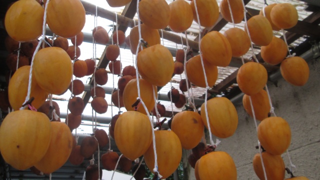 本当は、もっと黄色くて粉を吹いた干し柿に揃えたかったのが正直なところです。