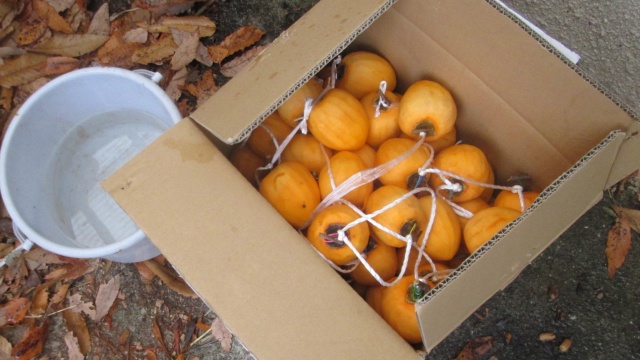 今回は段ボールいっぱいの柿。こういう年は、道具の力に頼るのが正解ですね。