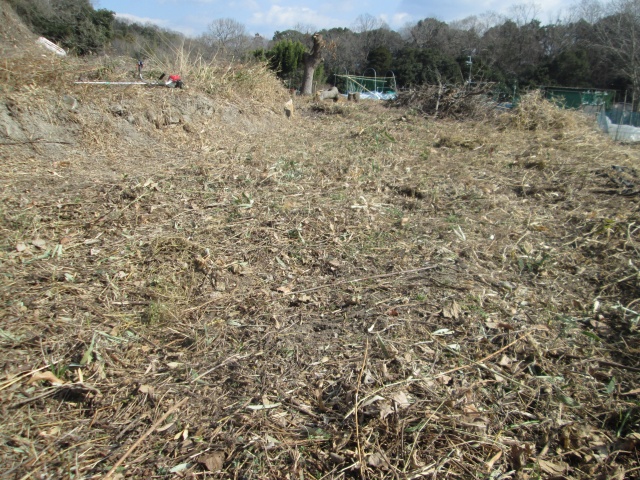 刈り倒して片づけていくと、少しずつ土が見えてきました。