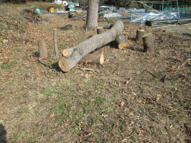 以前から置いてある丸太ベンチ周辺も、今回しっかり刈り取り。